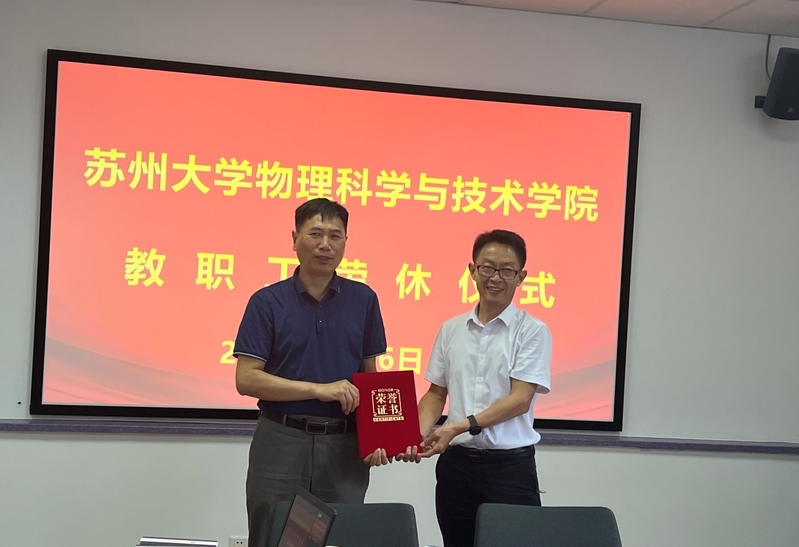 杨礼富书记充分和肯定了方建兴老师30多年来为学院事业发展,特别是国家级示范教学中心建设所做出的杰出贡献,并为方建兴老师颁发了荣誉证书并赠送了纪念品。方建兴老师发表了荣休感言,方老师回忆了自己从教40年,在萝莉社 物理学院工作32年的经历。方老师在物理学院工作30多年来,为国家级实验教学示范中心的申报和建设工作、物理学一级学科博士点的申报和建设工作、人才培养、课程建设等方面都做出了巨大的贡献。方老师表示,40年的教师工作经历让自己感到很幸福,很有成就感。在萝莉社 工作期间,也见证了物理学院的不断发展壮大,国家级实验教学中心建设发展取得的一系列成就,教学工作得到了师生的认可,自己有幸在平凡的岗位上做出了应有的贡献,实现了个人的价值,感谢学校和学院一直以来对他个人成长的关心,为他的个人发展提供好的平台。