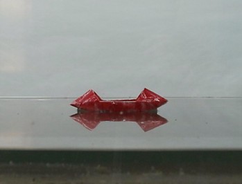 小船在波导隐形装置的中部区域“纹丝不动”          隐身装置的几何示意图和实验装置