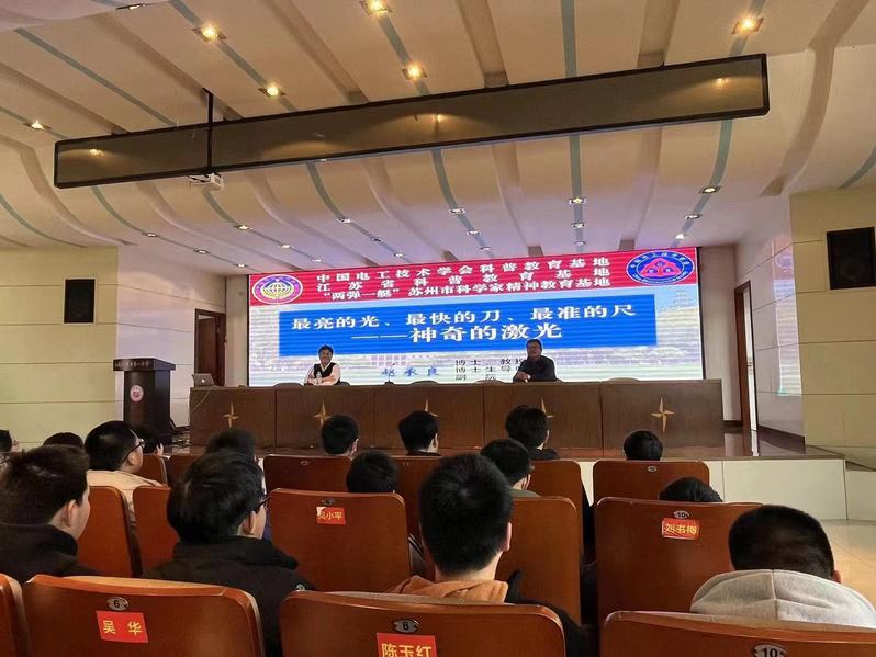 随后,赵承良副院长以“神奇的激光”为主题,结合自己的研究方向激光光场调控和相干衍射成像,从激光产生的前世今生、历届与激光相关的诺奖故事、激光在军事及各领域的应用以及江苏籍与激光有关的科学家的爱国精神等方面作了科普报告,并积极与同学进行互动,极大激发了参会同学的科学梦想和科学志向,成效显著。