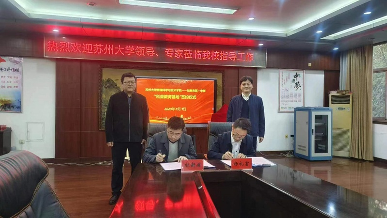为积极贯彻落实习近平总书记关于“科技创新、科学普及是实现创新发展的两翼,要把科学普及放在与科技创新同等重要的位置”的重要讲话精神,拓展青少年的科技视野,积极发挥萝莉社 资源和人才优势,更好的承担社会服务的责任。3月9日,学院杨礼富书记、赵承良副院长赴如皋市第一中学参加双方科普教育基地共建协议的签订和“萝莉社 科普教育基地”“萝莉社 优质生源基地”的揭牌仪式,赵承良副院长还受邀参加第二期“如皋市第一中学科创大讲堂”并作了一场“神奇的激光”科普报告。如皋市第一中学杜新建校长、田利剑副校长热情接待了杨书记一行并参加了相关活动。