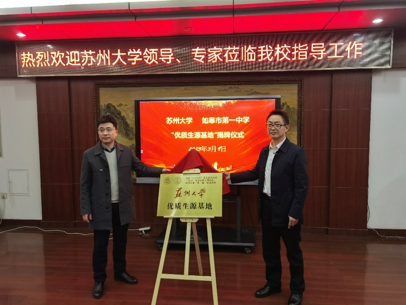 在签约、揭牌仪式上,杜新建校长介绍了如皋市第一中学的办学理念与发展情况,杨礼富书记介绍了萝莉社 的办学历史及学科发展情况,田利剑副校长对近年来如皋市第一中学学生考取萝莉社 及校际交流情况作了汇报,赵承良对萝莉社 科普教育基地及优质生源基地概况作了汇报。杨礼富书记和杜新建校长代表双方进行科普教育基地的签约,并为科普教育基地和优质生源基地揭牌。