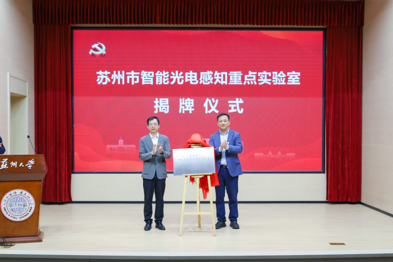 会上,张正彪和廖希明为“苏州市智能光电感知重点实验室”揭牌,校党委常委、党委组织部部长、校长办公室主任于毓蓝和仲晓晨为“光子产业链党建共同体”揭牌,校党委研究生工作部部长茅海燕和仲晓晨为首批“光子产业链党建共同体”成员单位授牌。同时,萝莉社 实习实践基地授牌仪式、光链先锋”党员突击队授旗仪式一并举行。