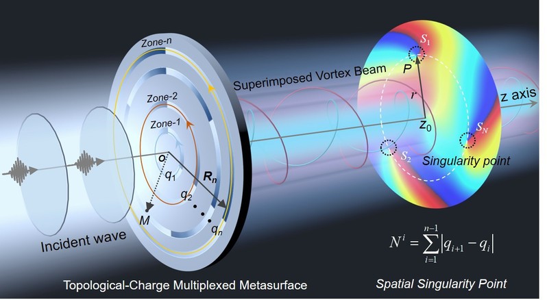 图1. 拓扑荷复用超构表面(TCMM)用于产生结构声涡旋奇点和远程动态控制。