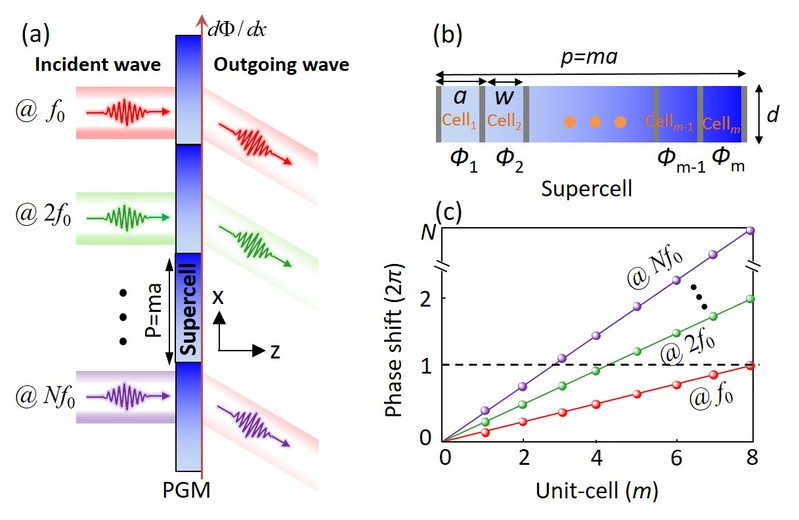 相关研究成果以“Integer multi-wavelength gradient phase metagrating for perfect refraction: Phase choice freedom in supercell”为题发表于Journal of the Acoustical Society of America (JASA) 杂志上。