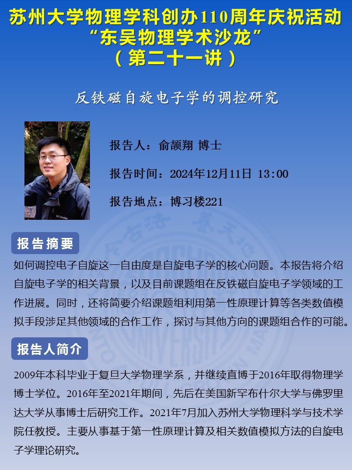 “东吴物理学术沙龙”(第二十一讲)——俞颉翔博士