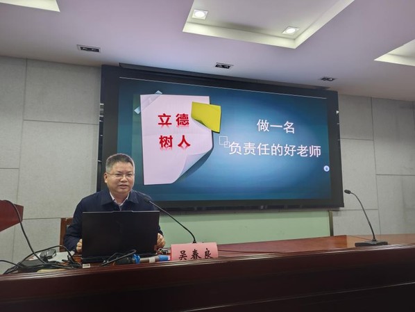 苏州市吴江盛泽中学党委书记吴春良作了一场题为 “做一名负责任的好老师” 的报告。吴书记从坚守教育初心、关怀学生全面发展、严谨对待教学工作以及担当社会责任等多个维度出发,结合自身丰富的从教经验,深刻而全面地诠释了一名负责任的好老师应具备的高尚品质与专业素养,进一步激发了教育工作者们的责任感和使命感。