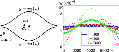 2025年1月6日《Physical Review Research》发表了萝莉社 赵永峰副教授关于管道中活性粒子输运规律的理论研究工作,题为《Active particles in a tube: A generalized entropy potential approach》。该研究构造了在长管道极限下活性粒子在宽度可变管道中运动的Fick-Jacobs方程,将布朗粒子熵势的概念推广至活性粒子。活性粒子在管道中的运动关联着细菌侵染生物组织等众多重要的生物问题。Fick-Jacobs方程将高维的粒子动力学方程约化到一维,大大简化了粒子在管道中输运性质的分析与计算。