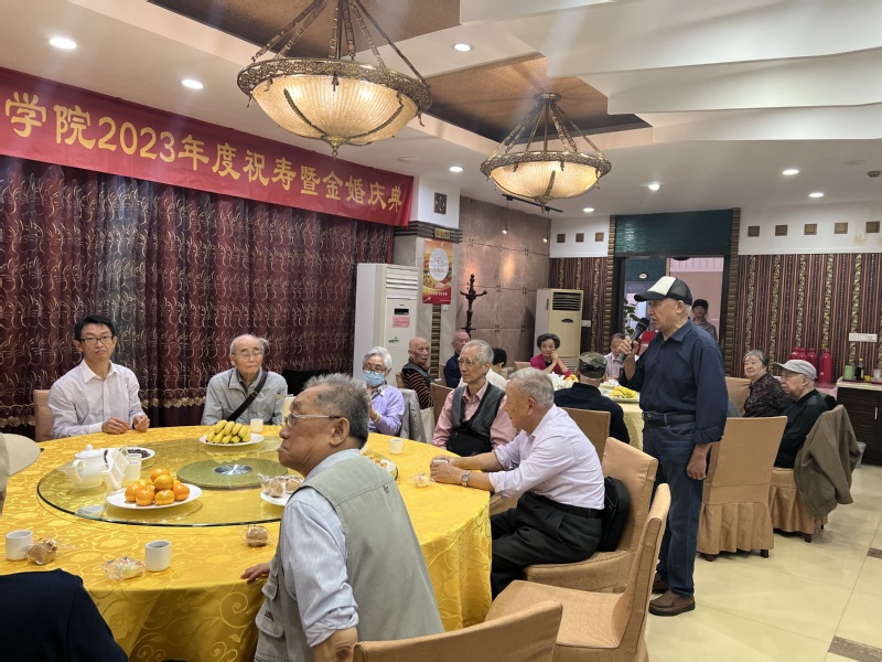 庆典会上,杨礼富书记代表学院党委、行政和全体老师向各位寿星们致以最美好的祝愿:祝愿各位寿星们生日快乐、健康长寿!祝愿金婚老同志伉俪情深,白头偕老。感谢老同志们为学院的发展奠定了良好的基础,也希望老同志们一如既往地关心、支持学院的各项事业。杨书记指出,明年是学院110周年院庆,希望老同志们为活动出谋划策,多提宝贵意见。杨书记强调,学院将认真贯彻落实习近平总书记关于老龄工作的重要指示精神,坚持政治上尊重、思想上关心、生活上照顾、精神上关怀,用心用情做好退休老同志工作,让老同志不断提高获得感、幸福感。