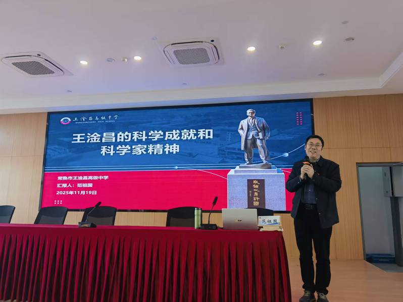 揭牌仪式后,常熟市王淦昌高级中学原党总支书记范祖国以《王淦昌的科学成就和科学家精神》为题讲授专题党课。深耕王淦昌精神研究的范祖国书记,用鲜活史料和生动细节,还原了这位“两弹一星”功勋科学家的传奇人生。王淦昌先生横跨多学科领域,在中微子研究、反西格马负超子发现、两弹研制、激光惯性约束核聚变概念、自主核电发展等方面均取得里程碑式成就。54岁时,他化名“王京”以身许国,隐身青海核基地17年,成为我国核武器研制的主要奠基人之一。党课聚焦其“爱国奉献、严谨治学、勇攀高峰”的精神核心,让在场党员接受了一次深刻的精神洗礼和党性教育。