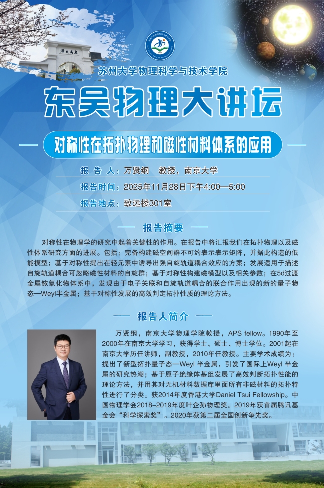 “东吴物理大讲坛“——万贤纲教授