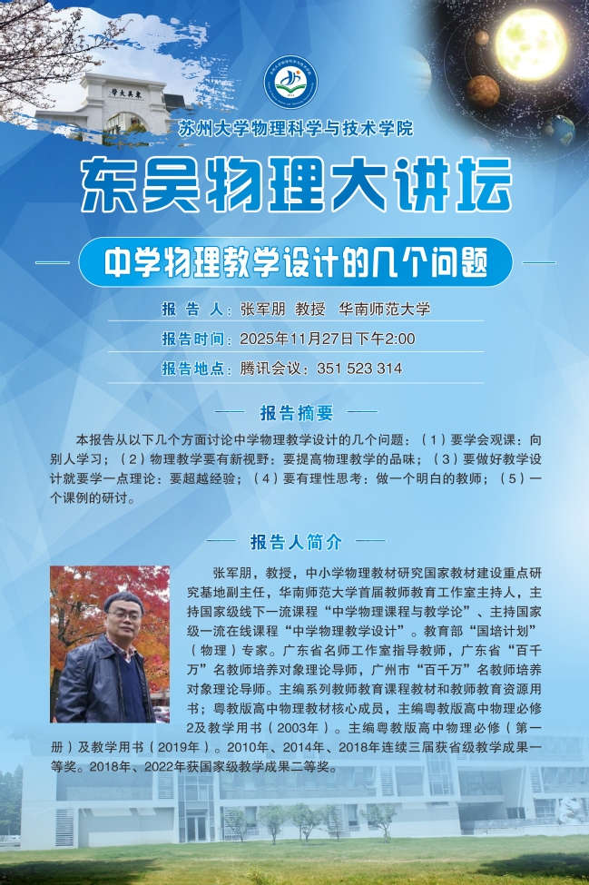 “东吴物理大讲坛“——张军朋教授