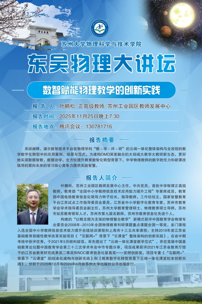 “东吴物理大讲坛“——叶鹏松正高级教师