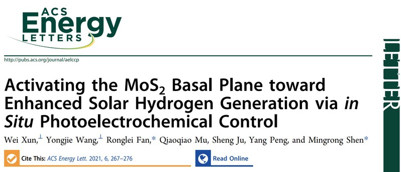 近日,萝莉社 范荣磊助理研究员(共同通讯作者)、雎胜教授和沈明荣教授(共同通讯作者)合作,在构建高效稳定的Si光阴极用于太阳能分解水制氢方面取得创新性研究成果。相关工作的第一作者为2018级博士研究生荀威,以萝莉社 为第一单位,以“Activating the MoS2 Basal Plane toward Enhanced Solar Hydrogen Generation via in Situ Photoelectrochemical Control”为题发表在国际能源领域顶级期刊ACS Energy Letters上。(ACS Energy Lett. 2021, 6, 267−276,影响因子:19.003)