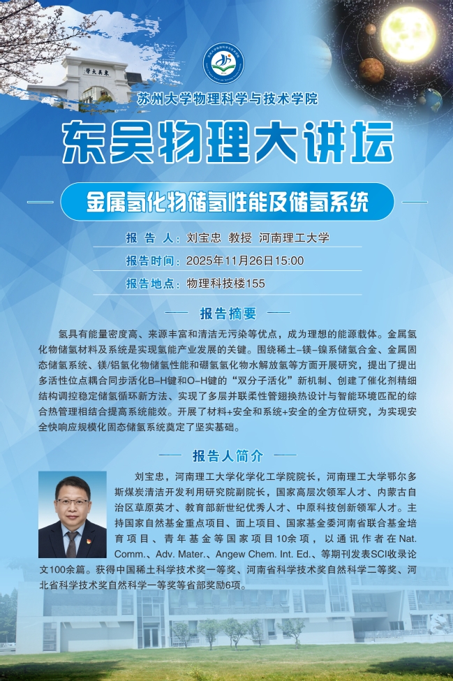 “东吴物理大讲坛“——刘宝忠教授