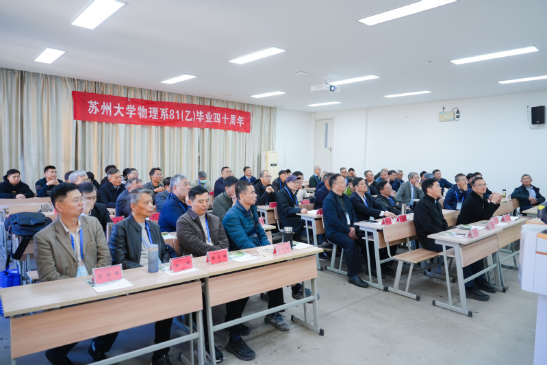 1981级乙班班长张林作为校友代表上台致辞。他表示,毕业四十载,同窗情谊历久弥坚,大家追忆当年在苏大的求学时光与点滴趣事,共勉当下的生活与事业,纷纷表达了对母校的深切眷恋。他号召校友们常念母校情、常回“家”看看,积极发挥自身优势,为母校和母院的高质量发展添砖加瓦。