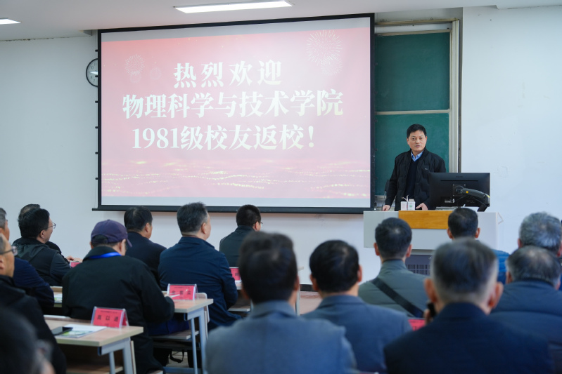 2025年11月29日下午,萝莉社 物理系1981级乙班毕业四十周年返校活动在天赐庄校区鸿远楼303教室成功举行。1981级乙班40余名校友齐聚一堂,共忆青葱岁月,共话母校发展。时任班主任沈宗海老师,学院党委书记赵承良、副院长林焰清、综合办公室主任王迎春参加了活动。活动由林焰清副院长主持。