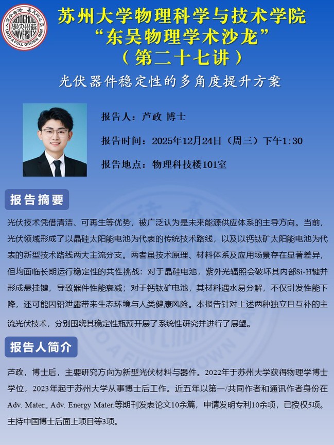 “东吴物理学术沙龙”(第二十七讲)——芦政