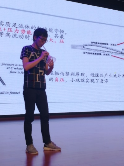 随后,PT团队成员们一一向初中生们展示了雪糕棍蛇形波、往水瓶倒水时声调的变化、悬浮水轮等一系列简单而又富含物理意义的实验。这种既体现物理实验的趣味性,又兼顾激发同学探索热情的展示引起了初中生们极大的兴趣,并受到了星湾师生的一致好评。