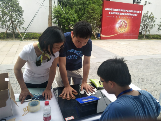 “科学商店”公益实践团应苏州市科协的邀请,参加了苏州市第31届暨姑苏区第7届科普宣传周展览,志愿者们带去了许多趣味实验仪器,包括手摇发电机、手摸发电仪、马格努斯飞机、喷鱼水冼、连锁雪橇棍等。