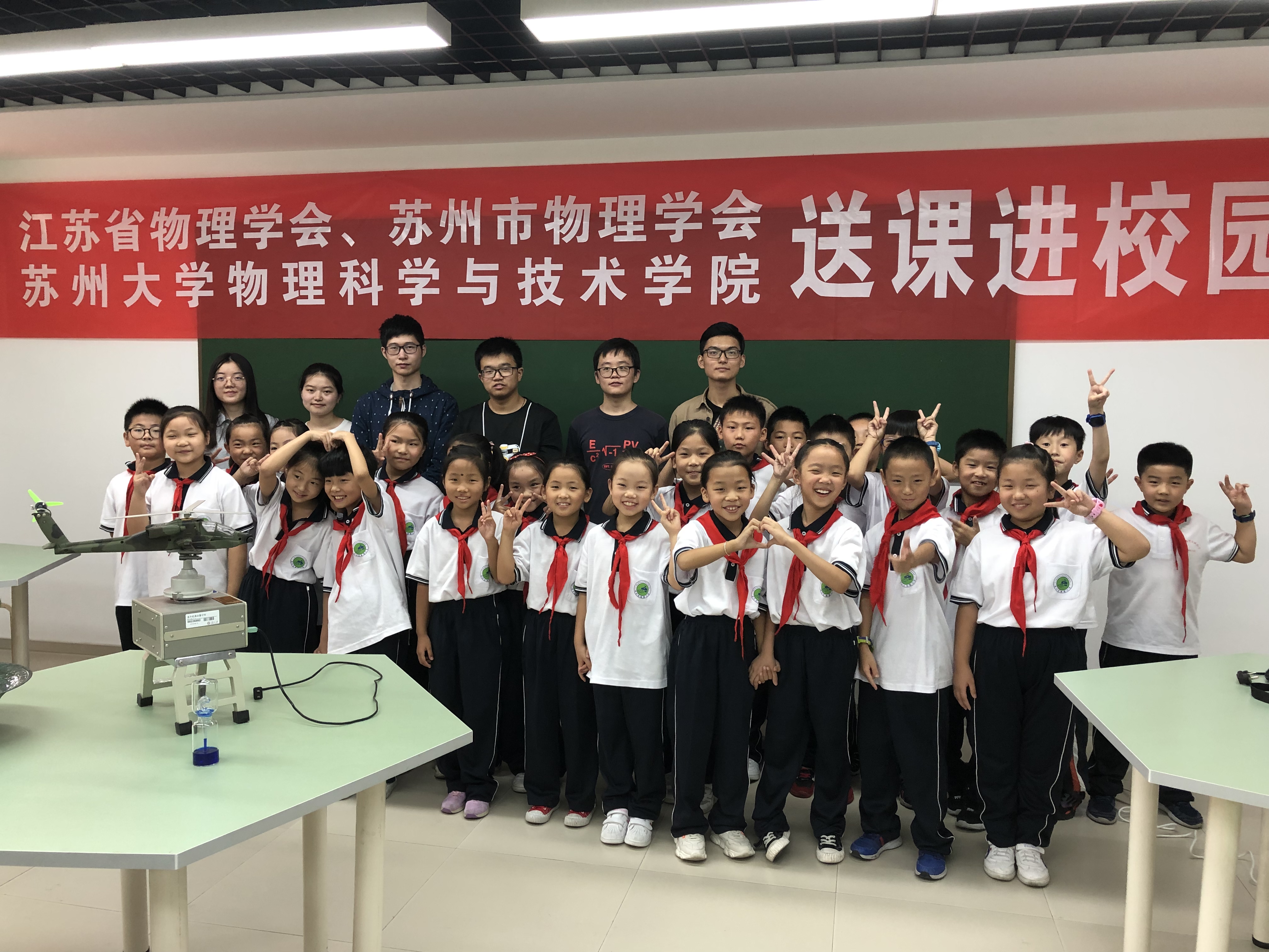 为庆祝伟大祖国诞辰70周年,9月27日上午,萝莉社 17级物理学(师范)的同学以“送课进校园”为主题,带着10余件科学实验器材走进吴中区蠡墅小学,为孩子们带来了一堂生动有趣的物理科学体验课。