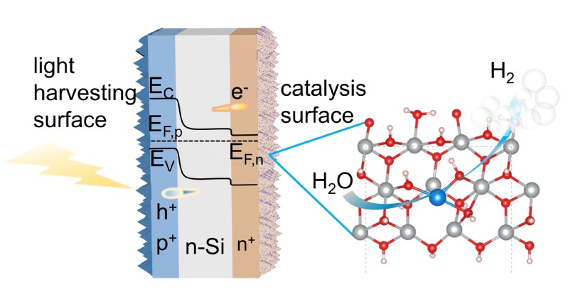 利用光电化学(PEC)分解水将间歇性的可再生太阳能转换并存储为氢能被认为是解决当前世界范围内环境危机和能源短缺问题最有前途的路径之一。半导体Si具有低成本、窄带隙、储量丰富以及合适的能带结构等优势,成为了极具潜力的PEC光电极材料。但是,Si表面载流子复合严重且析氢反应动力学缓慢等瓶颈阻碍了其在PEC分解水制氢应用中的进一步发展。将贵金属催化剂和半导体Si耦合是提升其PEC分解水制氢性能的典型途径。然而,贵金属催化剂直接沉积在Si表面容易聚集成较大的团簇,并容易从Si表面剥离,从而限制了贵金属的有效利用和Si光阴极的PEC性能的提升。