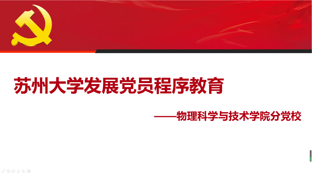 郭老师先是以一个抗击疫情的短视频为开篇,增强了学员的责任感与使命感。随后,他详细介绍了党员发展程序。从递交入党申请书至正式成为党员每一发展过程中的细节与时间节点、学员的学习与培训要求和个人行为方面的注意事项,郭老师都逐一道来。他阐述了发展过程中所需准备的各种材料,并以此提点学员注意日常行为规范,认真对待学习与工作,起到模范带头作用。成为党员的过程也是一个自我提高的过程,郭老师希望学员们能抱有“绝知此事要躬行”的积极态度,抓紧一切提高自己的机会,随时准备迎接党组织的考验。