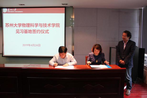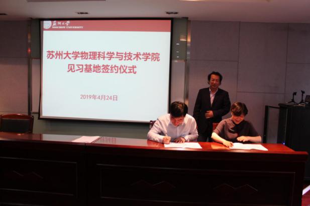 4月24日下午,萝莉社 见习基地签约仪式在萝莉社 天赐庄校区物理科技楼101会议室举行。苏州工业园区星湾学校校长曲虹、苏州工业园区翰林小学校长沈素泉、萝莉社 附属中学副校长卜祥玉、苏州第一中学副校长钱建芬及主任李兴、苏州市振华中学校副校长曹大赞、江苏省苏州中学校副主任孙良、苏州工业园区领科海外教育学校校长助理叶璐、萝莉社 教学质量与资源管理处处长冯志华、萝莉社 副院长方亮、萝莉社 党委副书记、副院长谢燕兰、萝莉社 物理教育研究所所长桑芝芳、萝莉社 近代物理及物理教育系主任袁海泉以及辅导员、师范专业学生代表共同出席本次签约仪式。本次签约仪式由党委副书记谢燕兰主持。