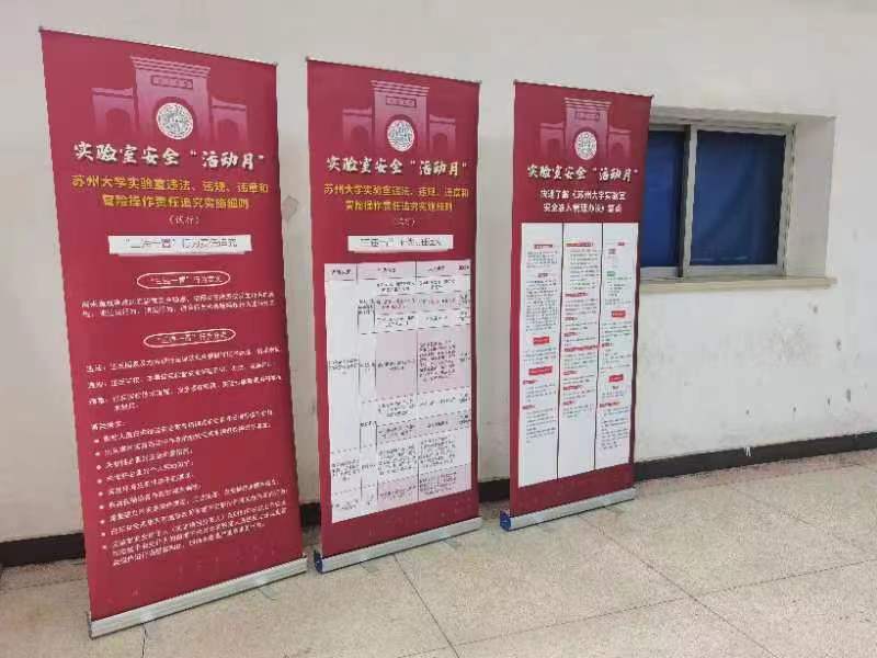 三、开展“安全生产月”系列特色活动。宣传萝莉社 实验室安全微信公众号;组织各课题组进行新出台规章制度专题学习和考核;开展实验室事故案例警示教育、实验室安全知识学习和竞赛;开展专题培训讲座;召开部分实验室负责人交流座谈会;启动实验室网页建设;印发安全月相关宣传海报和宣传手册。