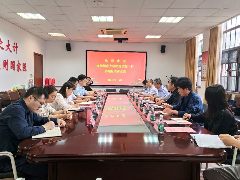 为加强校际交流合作,学习和借鉴兄弟院校的先进经验和成功做法,6月6日,杭州师范大学物理学院党委书记何军、副院长孙哲、副书记苏晓松和学院科室负责人一行来萝莉社 开展调研交流,在博习楼221会议室召开座谈会。萝莉社 杨礼富书记、周丽萍副院长、学院各办公室负责老师等参加了调研座谈会。会议由赵承良副院长主持。