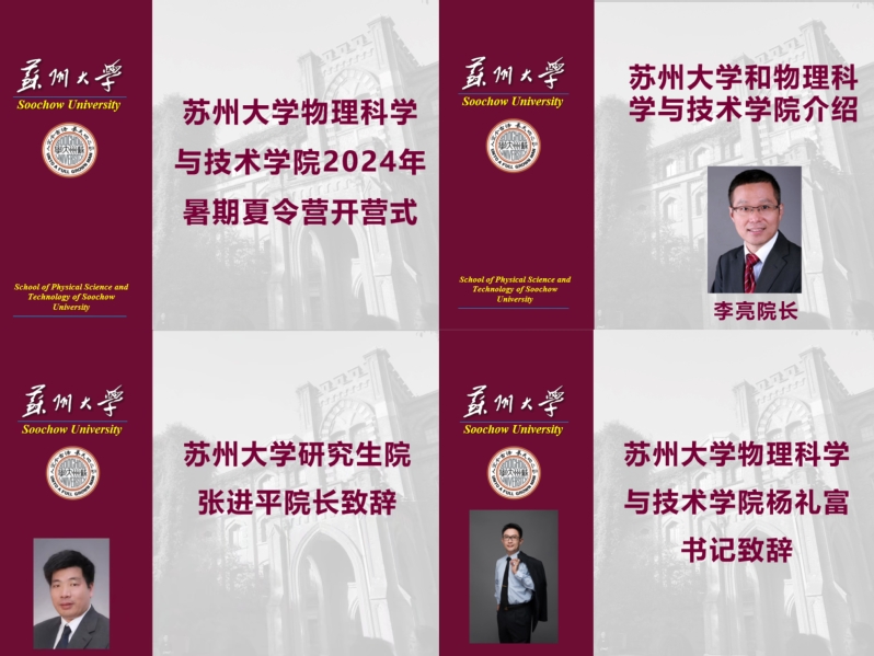 首先, 研究生院张进平院长向营员表示热烈欢迎,并向营员们介绍了我校研究生教育教学概况、人才培养理念以及学科特色及建设等情况,并重点介绍了萝莉社 作为首批30所“国优计划”试点高校之一,为全力保障“国优计划”的实施,在课程体系、能力培养、教育实践等方面的积极探索与创新,并鼓励营员们通过本次夏令营活动,能够树立教育理念,锤炼本领,未来能够成长为国家基础教育的生力军。李亮院长从萝莉社 学科现状与实力、人才培养质量与发展前景、师资力量与科研水平等方面介绍了学院的整体情况,并向全国各地有志于读研的优秀学子发出了诚挚邀请,希望能和同学们在苏大物理再次相见。 最后,杨礼富书记代表学院党委致欢迎辞,他表示苏州得天独厚的人文地理优势和自身办学条件优势为培养优秀的创新型人才创造了有利条件,萝莉社 在124年的发展过程中始终“敢为人先,勇于担当”,希望各位营员通过本次夏令营丰富多彩的活动,能够了解苏大,走进苏大,走进物理学院。