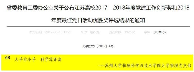 萝莉社 前身为东吴大学 1914 年创办的物理系,在学院的发展过程中,培养了像芮筱亭院士、马余强院士为代表两万余名优秀院友,也拥有了一支热爱国家、忠于党、专业素质高的师资队伍,涌现出像朱正元教授、许国梁教授等全国知名的物理学家,以及像乔登江院士、姜世勇教授、魏品良教授、丁厚昌教授等参加过国家核事业发展、为国家做出巨大贡献和隐姓埋名几十年的科学家。近年来,学院高度重视科普和科学家精神教育工作,坚持“科技创新”与“科学普及”两翼齐飞的科普理念,肩负历史重任,勇担社会责任和使命,秉承“爱国、创新、求实、奉献、协同、育人”的新时代科学家精神,大力弘扬“两弹一艇”科学家精神,积极开展形式多样的科普活动,得到了社会各界的广泛好评。
